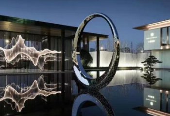 大型不銹鋼噴泉水景雕塑-圓環美學