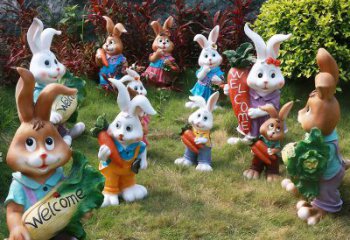 可愛兔子雕塑,點綴玻璃鋼戶外園林景觀