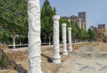 傳統大理石雕刻龍石柱裝飾擺件